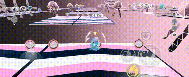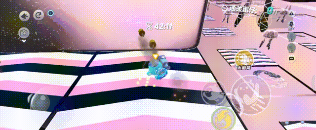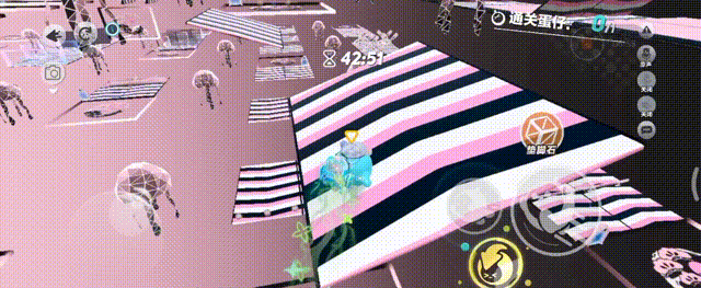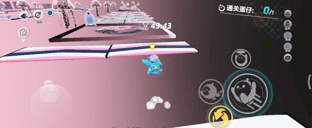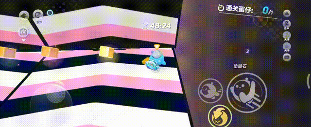 继续从传送带末端拿箱子,向上三连垫,要注意下落的瞬间扑到蹦床上,如果扑歪了,会穿模掉下去,也可以从侧面垫过去完美规避穿摸卡脚,先从左边拿地雷,再去右边拿传送球,找好时机炸过去,再从未端上蹦床,扑到上面顺带拿钩子钩到前方地板上,起飞后滚动到最左边,从左往右进方框连跳三次,躲避外面的隐藏销毁,跳扑上弹板抵达下一关