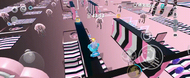 先走直线加速带,再从末端拿箱子,一次垫一个过去,拿羽毛,先使用后再跳到下个地板上,跳跃时看好方向,注意保持回拉,不要过头了,拿钩子向前方冰面上出钩,再蹭音符拿喷气背包,飞到弹板到下一关