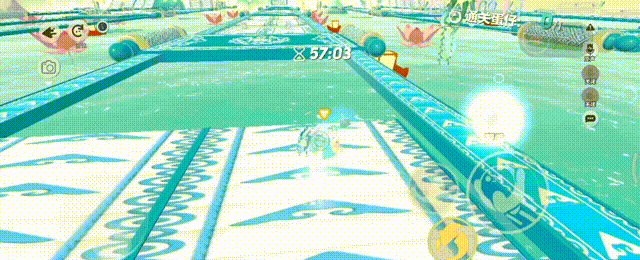 上传送带连续蹭音符起跳,之后进入穿梭之门不用动,慢慢穿梭过下个关卡,连续跳扑过台阶,也可以找好时机跳跃,踩上滑雪板,直接滑过冰面,记得下车,再蹭中间音符连续跳扑过去走旋转地板,最后进传送门,向右转到光带里就过关了