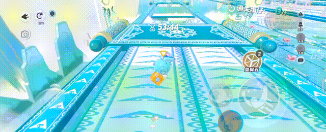 在花朵蹦床的中央蹭音符拿箱子垫到下一个上面,然后先拿喷气背包上蹦床再慢慢点按飞过去,在加速带未端借助风力完成滚动三连垫箱,再从传送带上走正确的穿梭门,正确的顺序是1.2.2,开滚动走右侧,躲避移动的弹板,前往左侧弹板至下一关