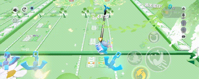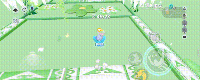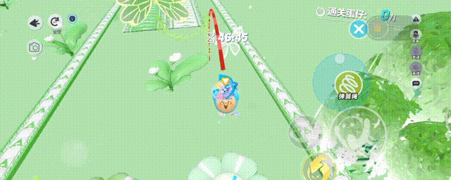 上蹦床拿钩子到花朵边缘弹起后,钩到前面的蝴蝶地板上飞过去,之后也一样,先拿钩子向前跳蹦床,再钩地板飞过去,使用弹簧绳勾逆向传送带,之后连跳过去,距离不够可以再拿一个,,开滚动进入传送门