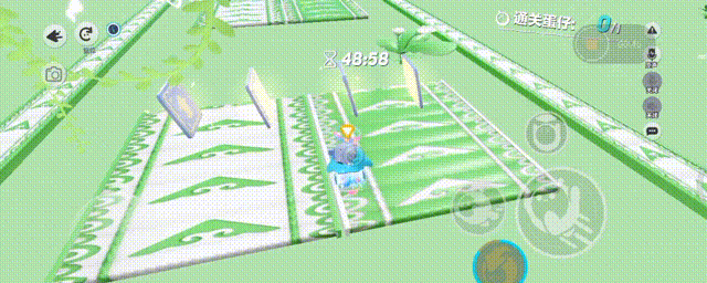 在加速带末端起跳,然后使用弹板,弹过去,在距离不够的情况下可以使用扑,向前跳起时,放弹跳板马上按飞扑,要注意好把控方向,扔传送球进销毁再到下一关地板上,蹭音符跳扑拿箱子滚动三连垫过去,再拿箱子借助加速音符三连垫,上弹板前往下一关