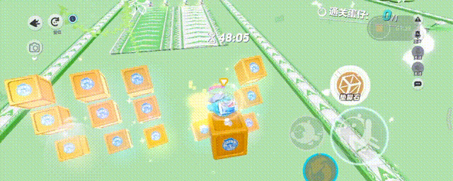 再从末端拿箱子,垫到旋转尺轮的上面,下来时留一个箱子,垫完后扑一下,之后同理,先垫一个上尺轮上,再垫两下箱子过去,下一关需要扔传送球过去,我们扔的同时,不要忘记再拿一个,扔的时候需要找好位置,不要扔歪或扔掉了,进传送虫洞时可以跳一下,不容易掉下去,上弹板到下一关