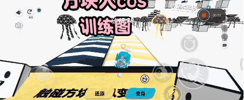 这是一张可以cos方块人的训练地图,我们可以变成四种不同的方块人,而且经过后可以使传送带变色,十分的有趣,而且这些颜色的搭配真的超级养眼,通关后还有一个绝美的背景墙可以打卡,全图共两层每层五大关,好玩不难,看完攻略有信心的宝子可以去试一下!