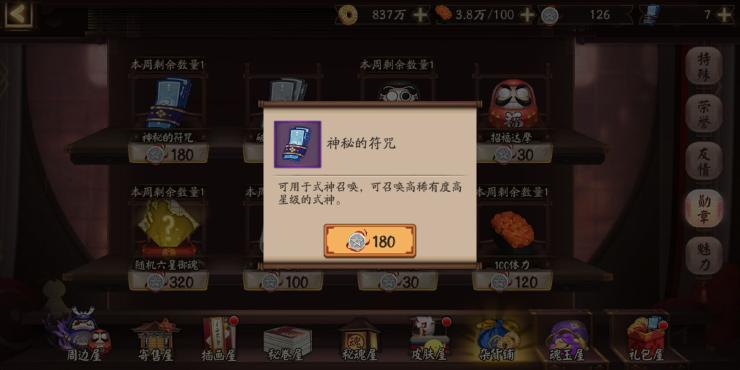 1、勋章商店:180勋章一张蓝票。