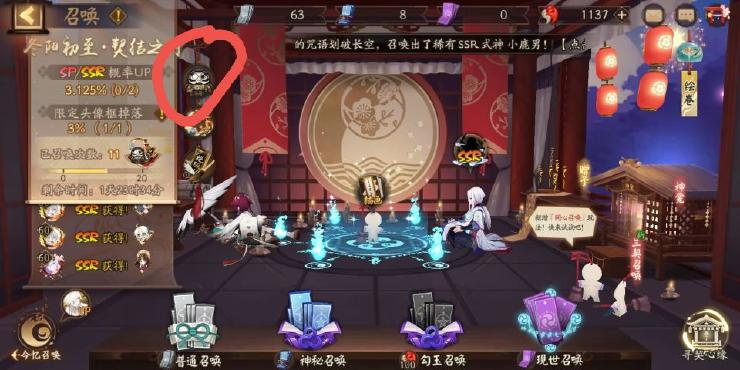 小概率提升卡池(40抽)、新式神卡池(200抽)、今忆召唤(100抽)等等,当召唤达到一定次数时,即可获得一整颗御行达摩。