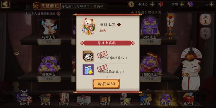 30r的招财上宾,每天一片碎片,奖励还算可以。