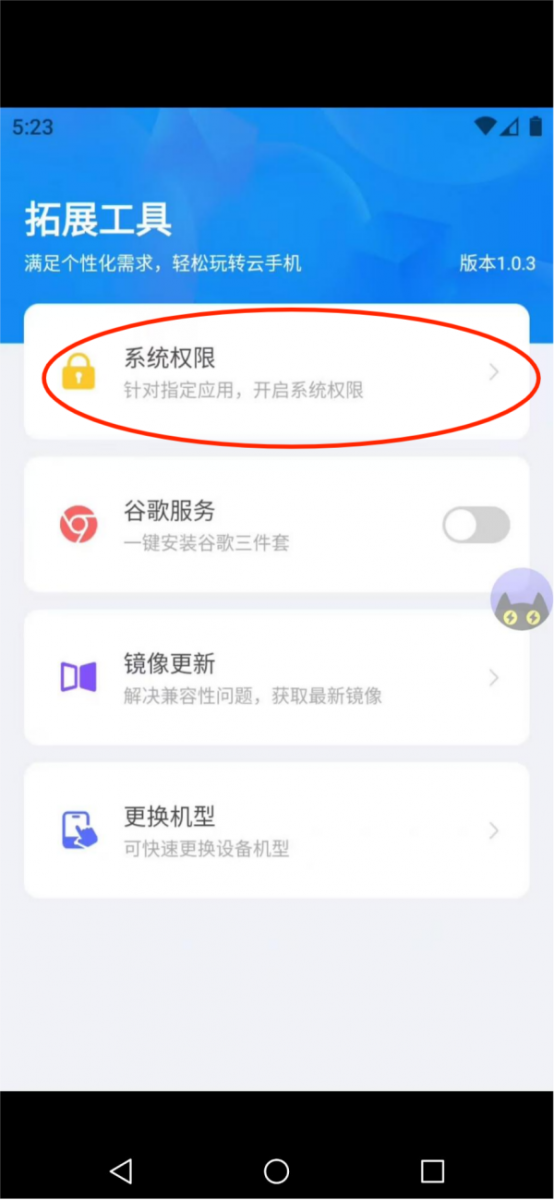 二、下载好后,我们在里面先登录御剑八荒的游戏账号。然后先点击拓展工具,点击系统权限