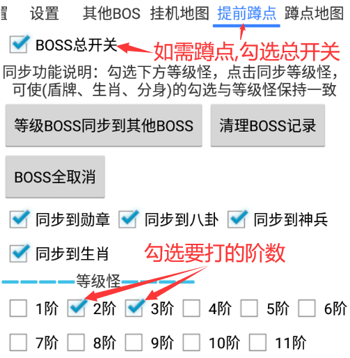 第3步:BOSS怪这页,勾选你要打的BOSS等级