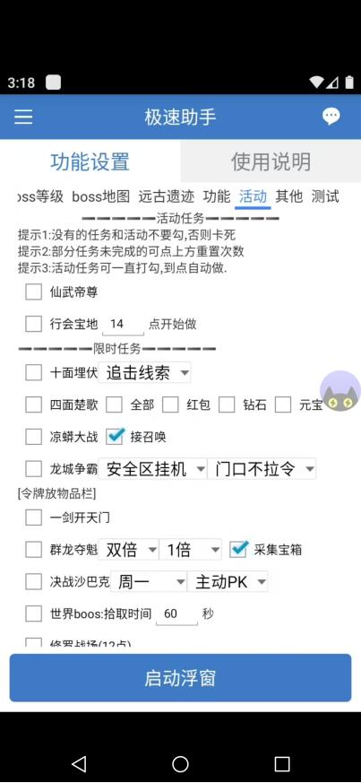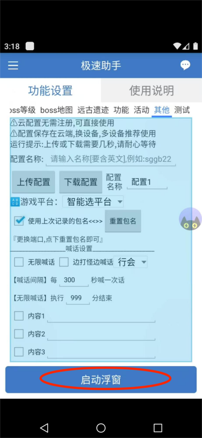 所有设置填写和选择好参数后,我们点击启动功能,,接着打开游戏就可以进行脚本的运行了。