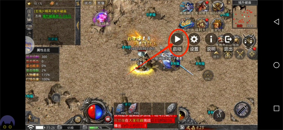 打开游戏,首先设置地图倍数为1.5倍。接着点击右边的小精灵图标,点击启动脚本,就可以开启挂机之旅了