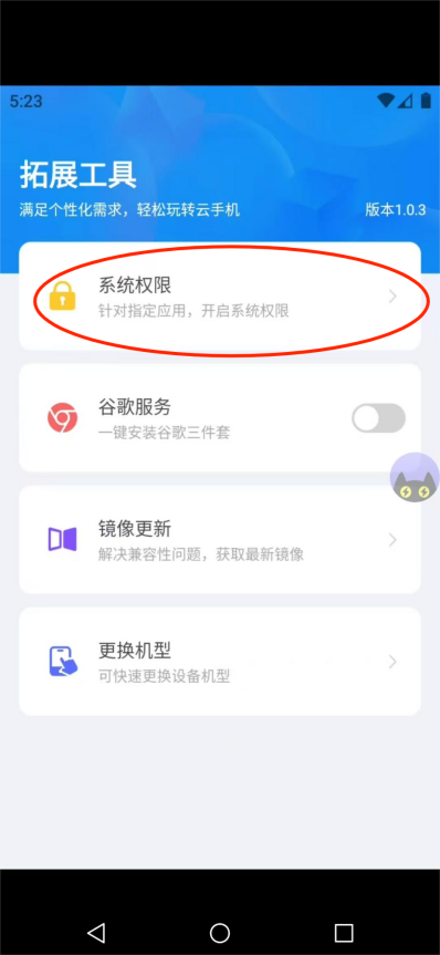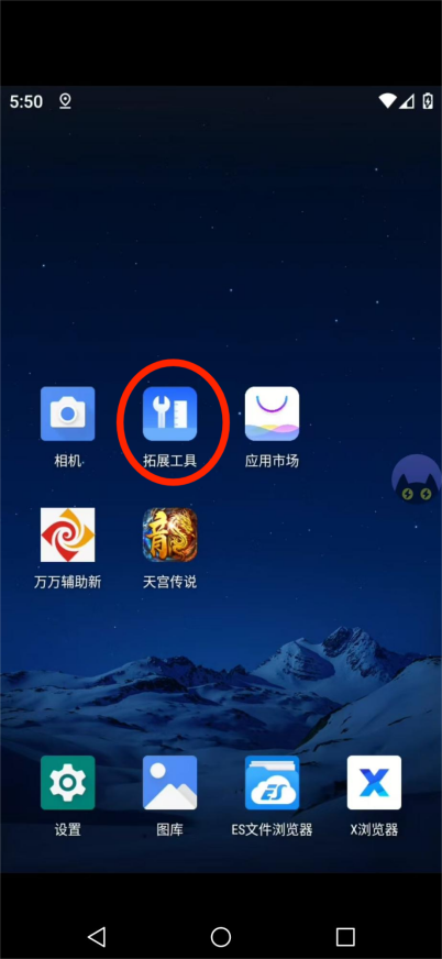 二、下载好后,我们在里面先登录天宫传说的游戏账号。然后先点击拓展工具,点击系统权限