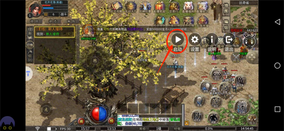 打开游戏。接着点击右边的小精灵图标,点击启动脚本,就可以开启挂机之旅了